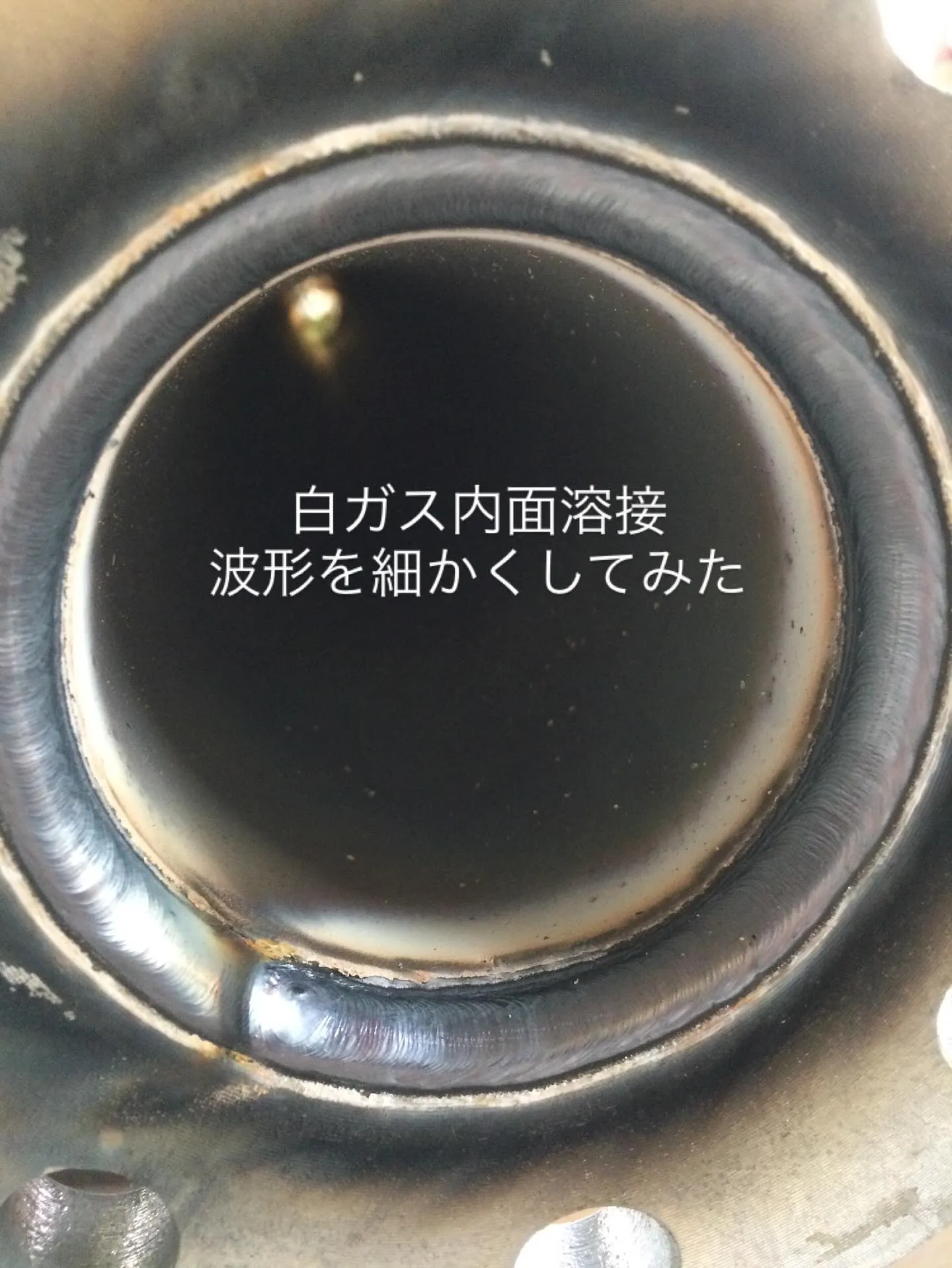 今日は白ガスフランジの内面溶接を試してみた。それにしても波形を細かく調整すると、思った以上に違いが出るもんだ。実際に色々な設定を試してみると、毎回新しい発見があるから面白いし、どんどん溶接のスキルを磨いていきたいって気持ちになる。